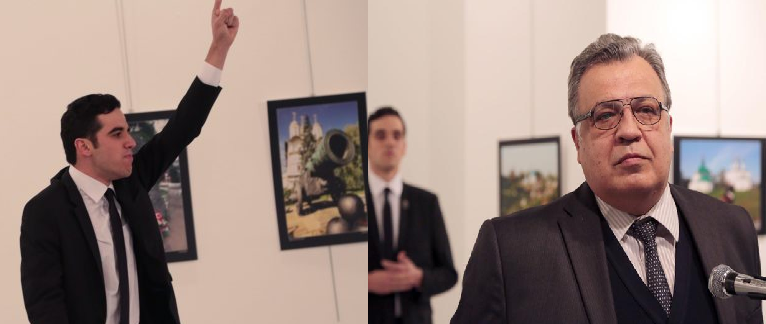على السفير الروسي في أنقرة وهو يلقي خطابا بمناسبة تدشين غالري فني وقد نقل على إثرها للمستشفى إلا انه