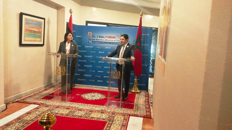 وقالت السيدة المنقوش، في تصريح للصحافة عقب مباحثات أجرتها مع وزير الشؤون الخارجية والتعاون الإفريقي والمغاربة المقيمين بالخارج، السيد ناصر بوريطة، على هامش أشغال المنتدى العالمي التاسع لتحالف الحضارات للأمم المتحدة، إن “المملكة المغربية دائما ما كان لها دور إيجابي في دعم عملية الاستقرار في ليبيا، ودعم جهود حكومة الوحدة الوطنية والمؤسسات الليبية، وذلك للمضي قدما والوصول إلى إنهاء القاعدة الدستورية، في أفق تنظيم انتخابات نزيهة وحرة يقبلها الشعب الليبي”.