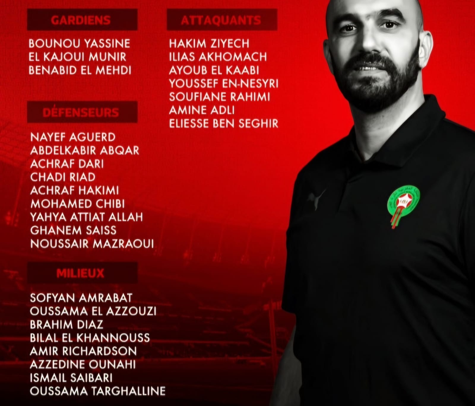 أعلن الناخب الوطني وليد الركراكي عن لائحة لاعبي المنتخب الوطني المغربي، التي تشارك في مباراتي زامبيا والكونغو يومي 7 و11 يونيو المقبل، في التصفيات المؤهلة إلى كأس العالم 2026.